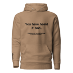 Part of the “You Have Heard It Said…” collection, this premium hoodie is designed to inspire and make a statement. Crafted from heritage cotton, it’s soft, durable, and built for everyday comfort.